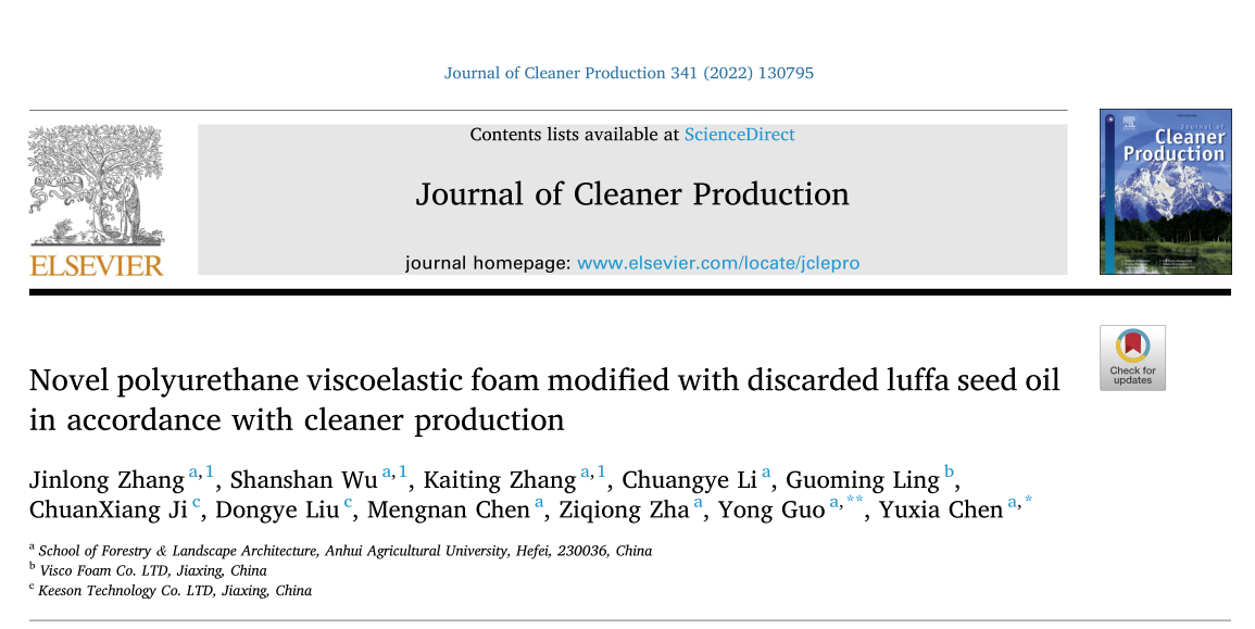 目前,商用聚氨酯粘弹性泡沫普遍存在散湿性较差的缺陷,该研究通过调控丝瓜籽油的添加量,进而调控泡沫的泡孔直径、孔隙率,并利用丝瓜籽油的已有的疏水性,改善粘弹性泡沫散湿性较差的缺陷,丝瓜籽油基聚氨酯粘弹性泡沫仅在 48 小时内即可达到与商用聚氨酯粘弹性泡沫72 小时相同的散湿率。这一发现有利于优化人与床垫之间的界面微气候。林学与园林学院人体工程学研究中心生物质健康家居研究团队的硕士研究生张锦龙和邬珊珊以及博士研究生张凯婷为论文的共同第一作者。陈玉霞教授和郭勇教授为共同通讯作者,我校为第一通讯单位。该研究得到国家自然科学基金、安徽省自然科学基金以及与麒盛科技有限公司的产学研项目的支持。该论文的相关研究成果同时也申请了国家发明专利。