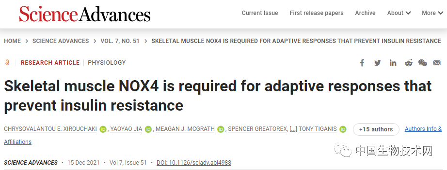 在这项研究中,研究人员通过小鼠模型和人类受试者证实,骨骼肌中NADPH氧化酶4(NOX4)的水平会随着衰老和肥胖而降低,肌肉中NOX4的缺失加剧了肥胖和与年龄相关的胰岛素敏感性下降。此前有研究表明,NOX4的缺失还会损害运动能力。