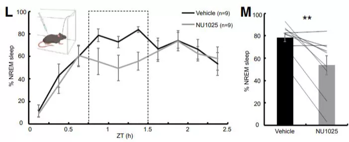 进一步的研究使用脑电图在小鼠身上进行测试。就像斑马鱼一样,PARP1活性的抑制降低了非快速眼动睡眠的持续时间和质量。这说明PARP1能够告诉大脑它需要睡眠,否则它将面临危险。
