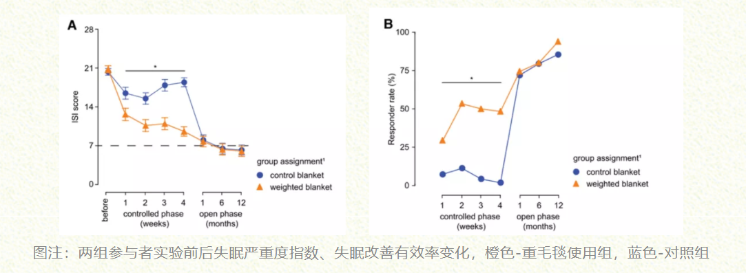 在4周实验结束后,有112名参与者继续参加了为期一年的重毛毯使用实验,一年后,所有参与者失眠改善的有效率为92%,完全缓解率为78%。