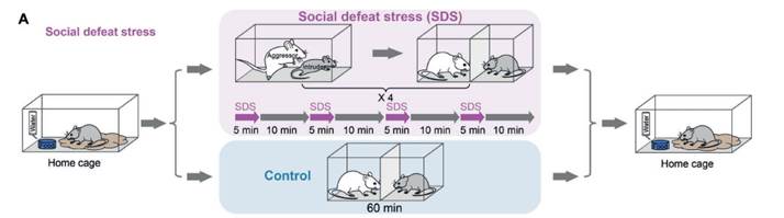 VTA区域抑制性神经元中42%为生长激素抑制素(SST)神经元,10%为小清蛋白(PV)能神经元。光纤钙成像技术发现SDS应激后这两类神经元均被激活,其中SST神经元激活更多一些,并且是持续性激活。