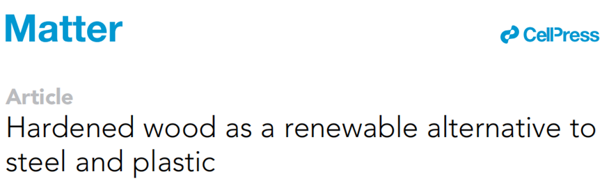 相关论文以《硬木材作为钢和塑料的可再生替代品》(Hardened wood as a renewable alternative to steel and plastic)为题发表在 Matter 上。