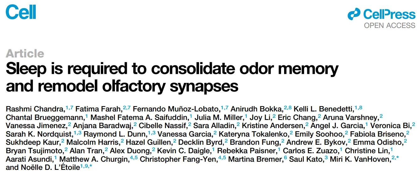 为什么人的一生中有三分之一的时间都在睡觉?为什么许多动物即使在面临捕食者威胁的情况下也要睡觉?关于睡眠如何有益于大脑一直是科学界的一个谜题。近日,加州大学旧金山分校和圣何塞州立大学的研究人员在 Cell 期刊发表了题为:Sleep is required to consolidate odor memory and remodel olfactory synapses 的研究论文。