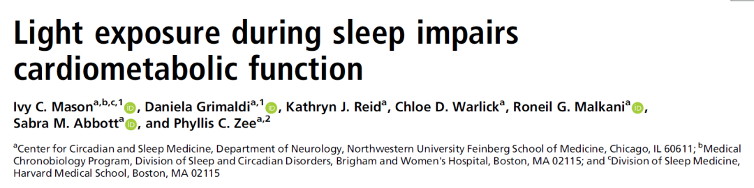 2022年3月14日,美国西北大学范伯格医学院的研究团队在《美国国家科学院院刊》(PNAS)发表了题为:Light exposure during sleep impairs cardiometabolic function(睡眠期间的光照会损害心脏代谢功能)的研究论文【1】。
