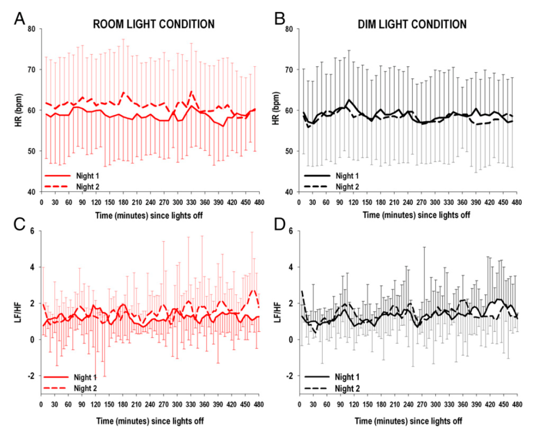 在这项研究中,研究团队发现,当一个人在光线充足的房间里睡觉时,他的心率会增加,这个时候即使睡着了,自主神经系统(分为交感神经系统和副交感神经系统)也会被激活。这是一种很糟糕的情况,因为通常情况下,人的心率和其他心血管系统参数会在夜晚降低,在白天升高。由交感神经系统和副交感神经系统来调节我们白天和晚上的生理机能。交感神经系统负责白天的调控,而副交感神经负责晚上的调控。夜间睡眠时的光照会增加交感神经系统的激活,导致身体无法得到有效休息。