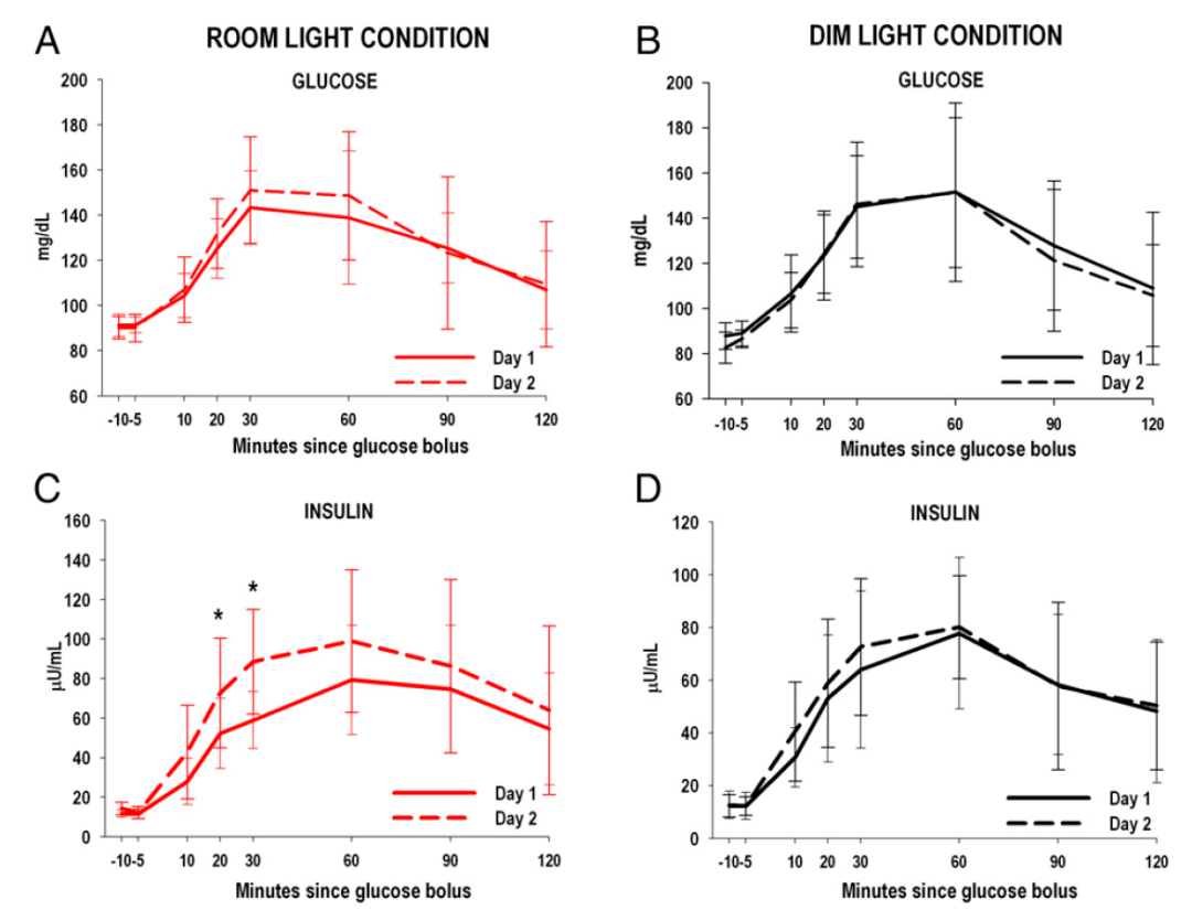 这项研究结果表明,睡眠期间暴露于中等室内光照下仅一晚就会损害血糖和心血管调节,从而增加心脏病、糖尿病和代谢综合征风险。这提示了我们,夜晚睡眠期间避免或尽量减少光照量非常重要。