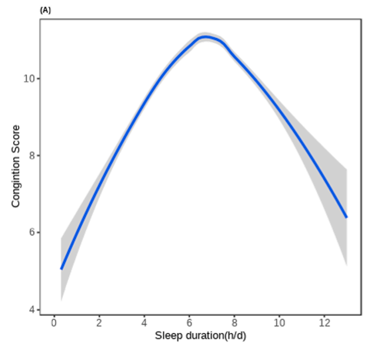 杜克大学曾在中国主持了一项为期四年的追踪研究,他们发现,参与人员的睡眠时长和认知能力得分呈显著的倒 U 型相关,无论是睡眠不足还是过长,认知能力都会显著下降。