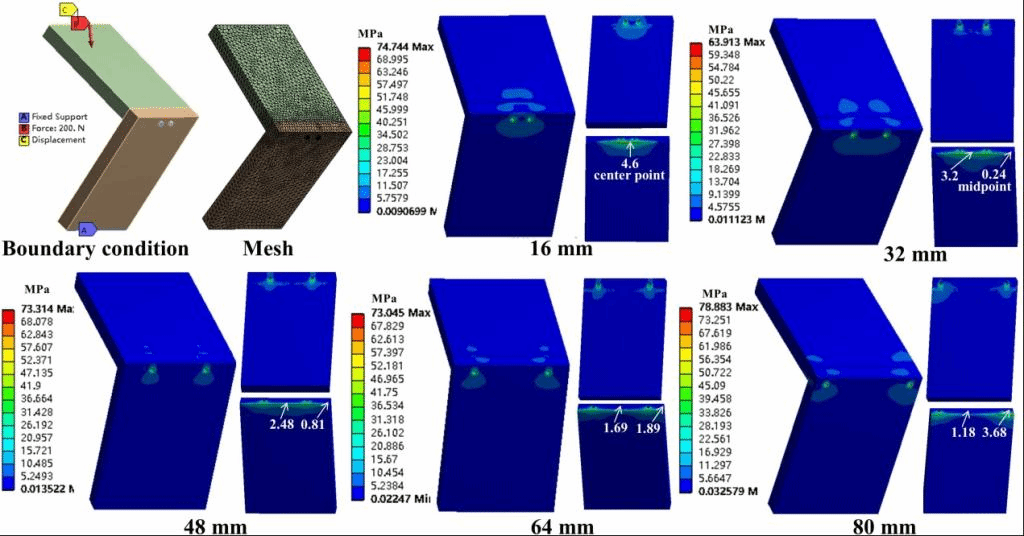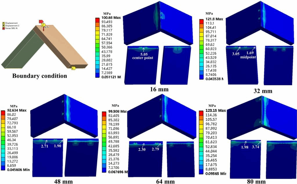该研究以竹定向刨花板,利用有限元分析和物理实验相结合的方法对角构件的拉伸和压缩强度研究螺钉安装间距对竹定向刨花板(BOSB)和木定向刨花板(WOSB)角构件弯曲强度和刚度的影响。结果发现与WOSB相比,BOSB具有较高的拉伸强度,而且构件失效是由于螺钉发生屈服,因此BOSB构件具有较高的强度和韧性。BOSB构件破坏弯矩约为WOSB构件的2.5倍。通过有限元分析结果也验证了这一点。另外,螺钉间距为48mm时,构件上最大等效应力较小,弯曲强度和刚度较大,是最为合适的螺钉安装间距。